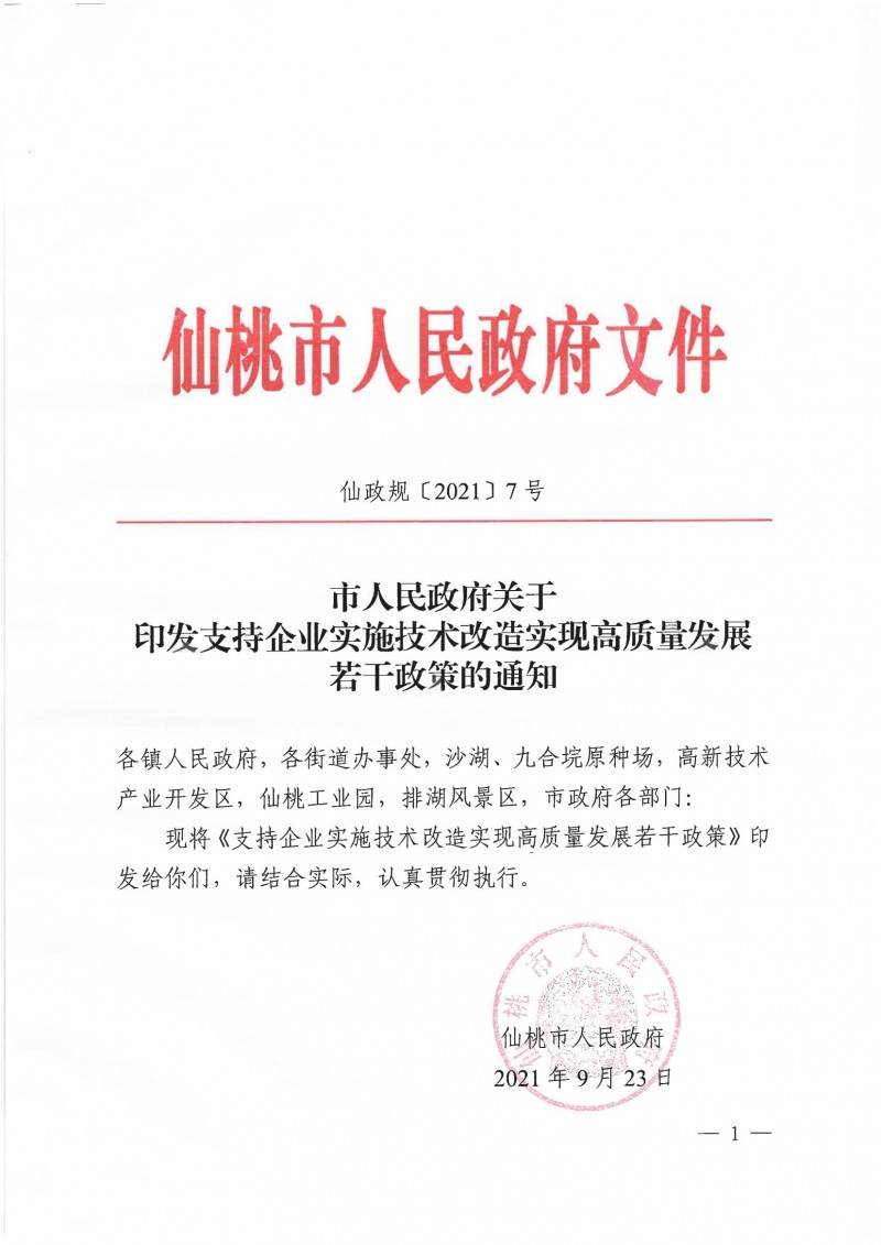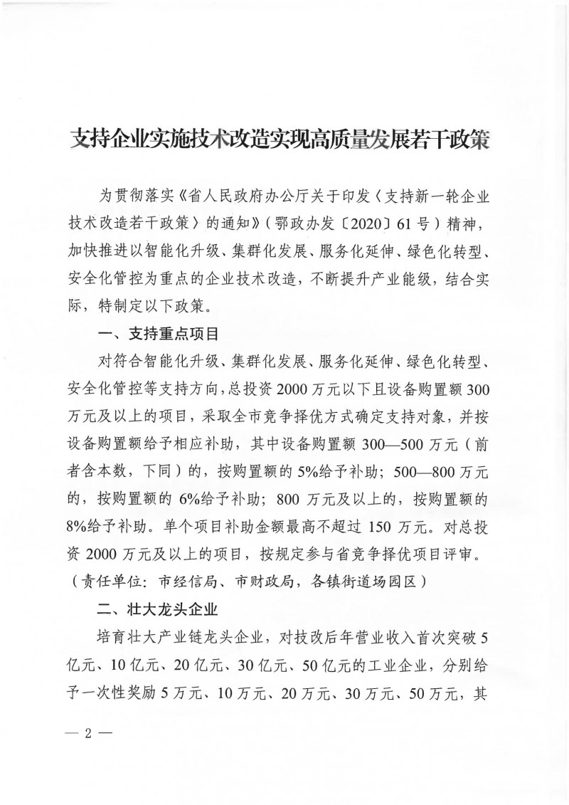關于印發(fā)支持企業(yè)實施技術改造實現(xiàn)高質量發(fā)展若干政策的通知
